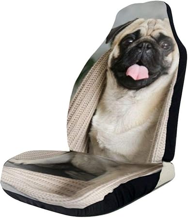 Amazon 車用シートカバー グレーのテキスタイルカウチに横たわっている悲しい表情の面白い夢のようなパグ おしゃれ かわいい マルチカラー 軽自動車 普通車 フロント座席適用 シートカバー 車 バイク